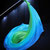 Die Seide dieses Artikels beginnt mit einem knalligen Grün und verläuft über ein leuchtendes Türkis hin zu einem satten Blau.