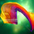 Die Seide dieses Artikels beginnt mit einem leuchtenden Orange und verläuft über ein strahlendes Gelb hin zu einem knalligen Grün.